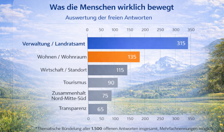 Rund 1.000 Bürgerinnen und Bürger aus dem Berchtesgadener Land haben sich in den vergangenen Wochen an unserer Umfrage beteiligt – deutlich mehr als wir erwartet hatten.